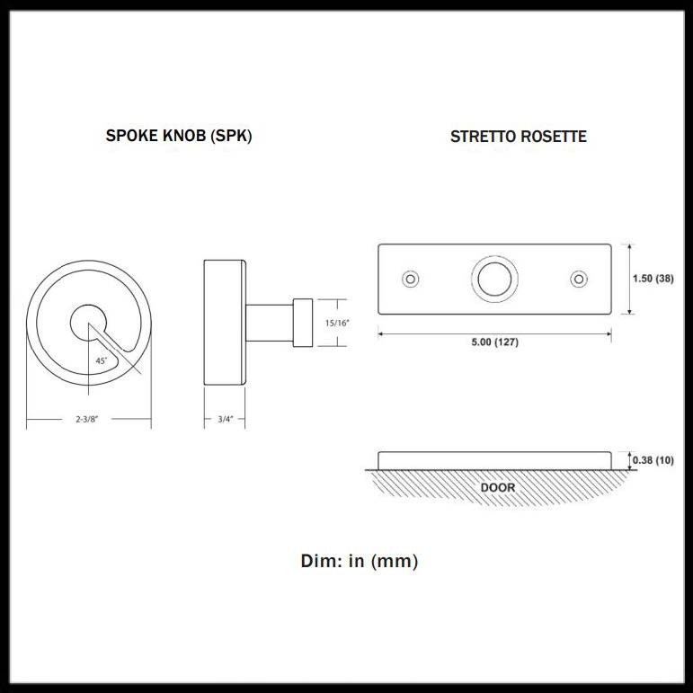 This Stretto Rosette cannot be combined with other rosette designs on the opposite side of the door. It also requires a 1-1/4” diameter borehole and 2-hole door preparation for thumbturn privacy.