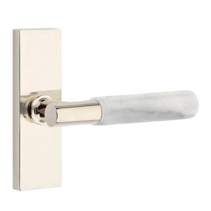 This Contemporary Lever is Modern Brass and will give any door a unique style. The Emtek T-Bar White Marble Lever has a Stretto Rosette and fits any door between 1-3/8” to 2-1/4" thick. Standard latch is for 2-3/8" backset. Includes Latch and Strike Plate. Available in a variety of different finishes.
