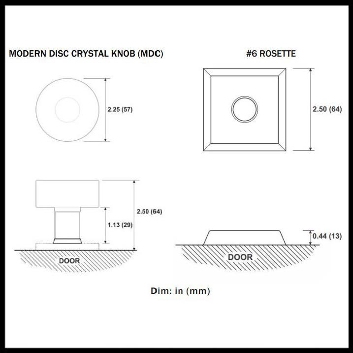 This Rustic Living doorknob is Crystal and will give any door a unique style. The Emtek Modern Disc Crystal Knob has a #6 Rosette and fits any door between 1-3/8” to 2-1/4" thick with a 2-1/8" bore standard door prep. Standard latch is for 2-3/8" backset. Includes Latch and Strike Plate. Available in a variety of different finishes.
