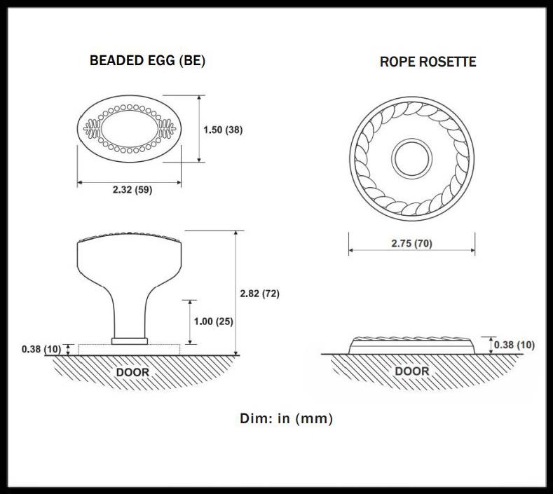 This American Heritage doorknob is Classic Brass and will give any door a unique style. The Emtek Beaded Egg Knob has a Rope Rosette and fits any door between 1-3/8” to 2-1/4" thick with a 2-1/8" bore standard door prep. Standard latch is for 2-3/8" backset. Includes Latch and Strike Plate. Available in a variety of different finishes.