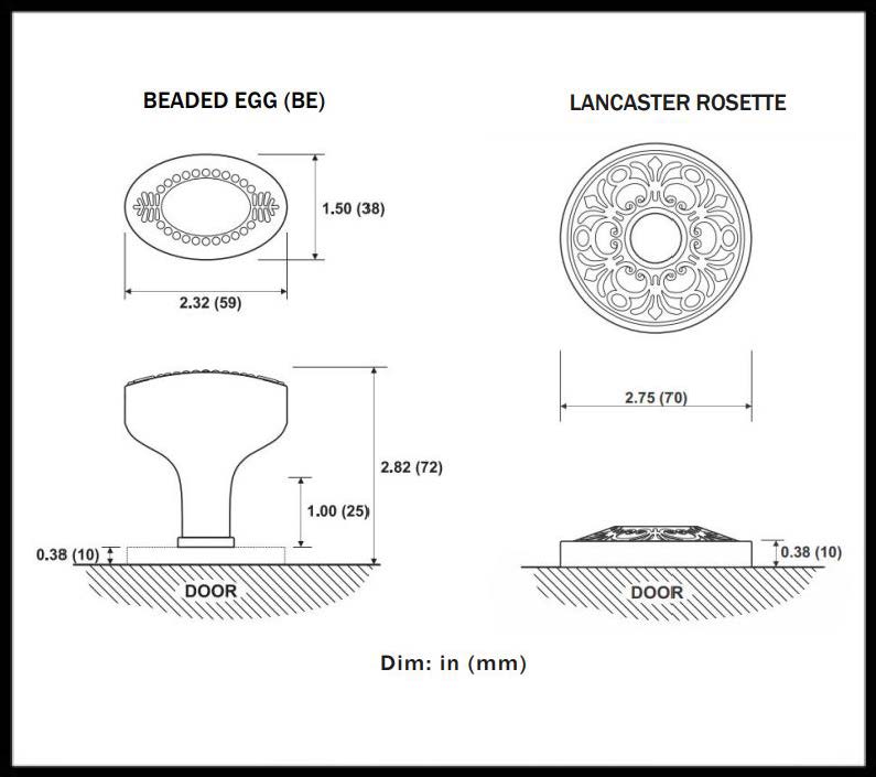 This American Heritage doorknob is Classic Brass and will give any door a unique style. The Emtek Beaded Egg Knob has a Lancaster Rosette and fits any door between 1-3/8” to 2-1/4" thick with a 2-1/8" bore standard door prep. Standard latch is for 2-3/8" backset. Includes Latch and Strike Plate. Available in a variety of different finishes.