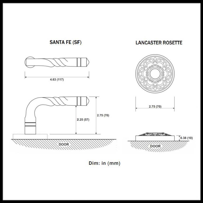 This American Heritage lever is Classic Brass and will give any door a unique style. The Emtek Santa Fe Lever has a Lancaster Rosette and fits any door between 1-3/8” to 2-1/4" thick with a 2-1/8" bore standard door prep. Standard latch is for 2-3/8" backset. Includes Latch and Strike Plate. Available in a variety of different finishes.