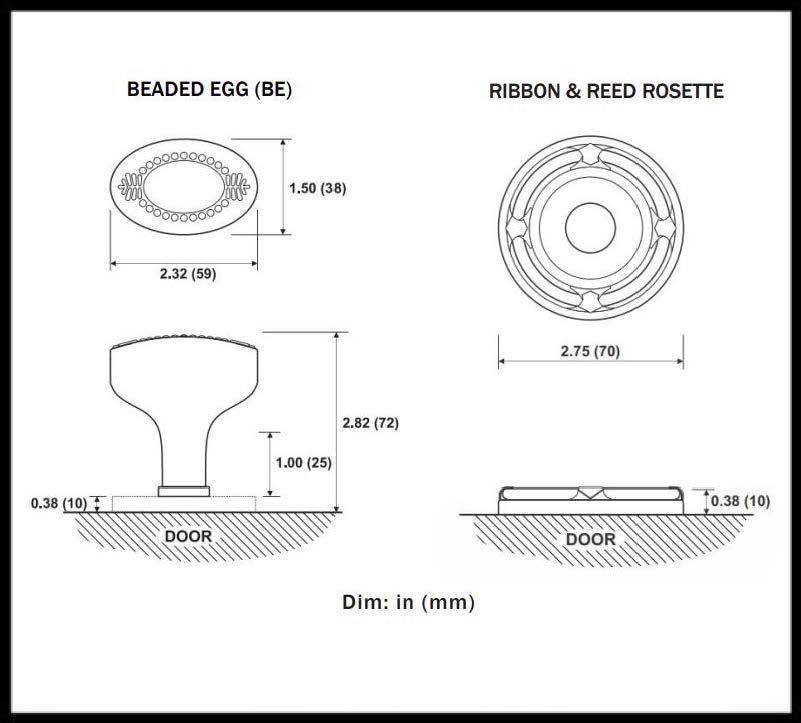 This American Heritage doorknob is Classic Brass and will give any door a unique style. The Emtek Beaded Egg Knob has a Ribbon & Reed Rosette and fits any door between 1-3/8” to 2-1/4" thick with a 2-1/8" bore standard door prep. Standard latch is for 2-3/8" backset. Includes Latch and Strike Plate. Available in a variety of different finishes.