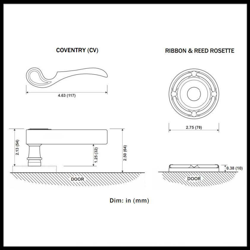 This American Heritage lever is Classic Brass and will give any door a unique style. The Emtek Coventry Lever has a Ribbon & Reed Rosette and fits any door between 1-3/8” to 2-1/4" thick with a 2-1/8" bore standard door prep. Standard latch is for 2-3/8" backset. Includes Latch and Strike Plate. Available in a variety of different finishes.