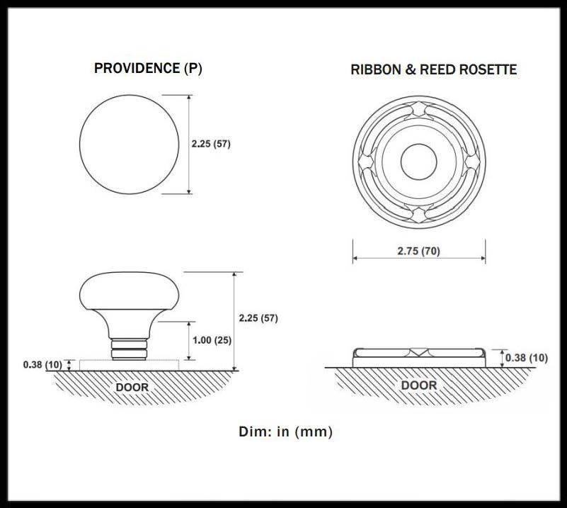 This American Heritage doorknob is Classic Brass and will give any door a unique style. The Emtek Providence Knob has a Ribbon & Reed Rosette and fits any door between 1-3/8” to 2-1/4" thick with a 2-1/8" bore standard door prep. Standard latch is for 2-3/8" backset. Includes Latch and Strike Plate. Available in a variety of different finishes.