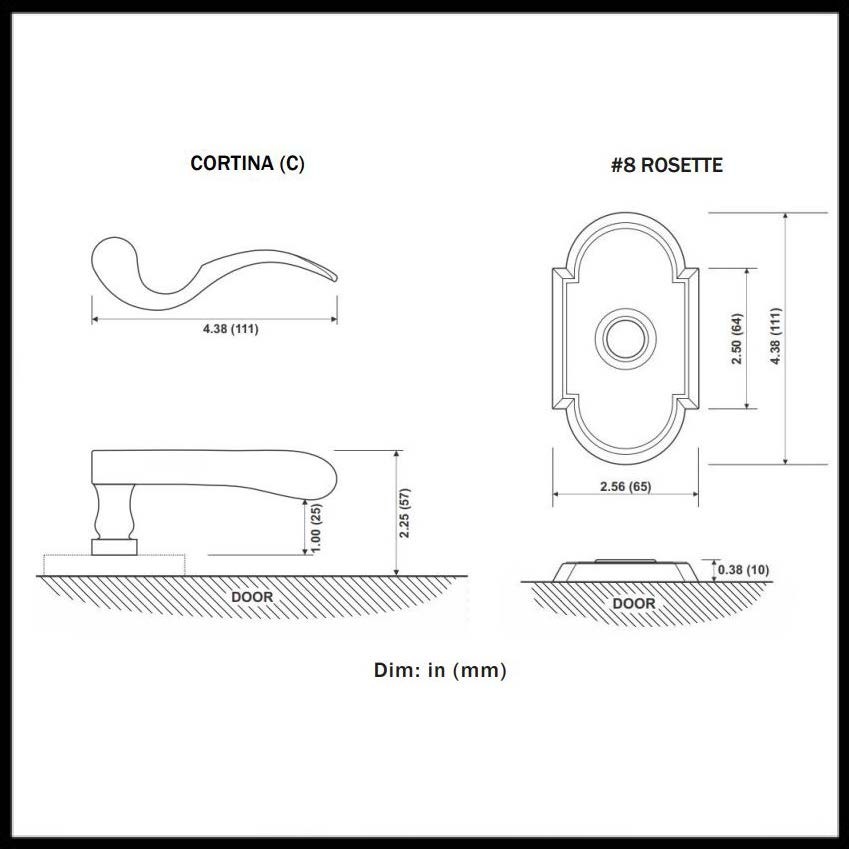 This American Heritage lever is Classic Brass and will give any door a unique style. The Emtek Cortina Lever has a #8 Rosette and fits any door between 1-3/8” to 2-1/4" thick with a 2-1/8" bore standard door prep. Standard latch is for 2-3/8" backset. Includes Latch and Strike Plate. Available in a variety of different finishes.