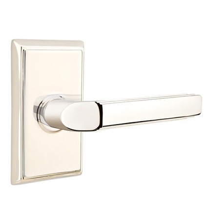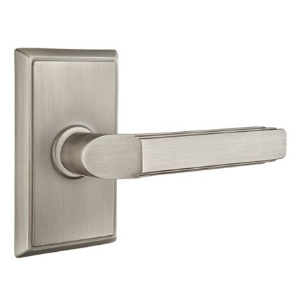 This American Heritage lever is Classic Brass and will give any door a unique style. The Emtek Milano Lever has a Rectangular Rosette and fits any door between 1-3/8” to 2-1/4" thick with a 2-1/8" bore standard door prep. Standard latch is for 2-3/8" backset. Includes Latch and Strike Plate. Available in a variety of different finishes.