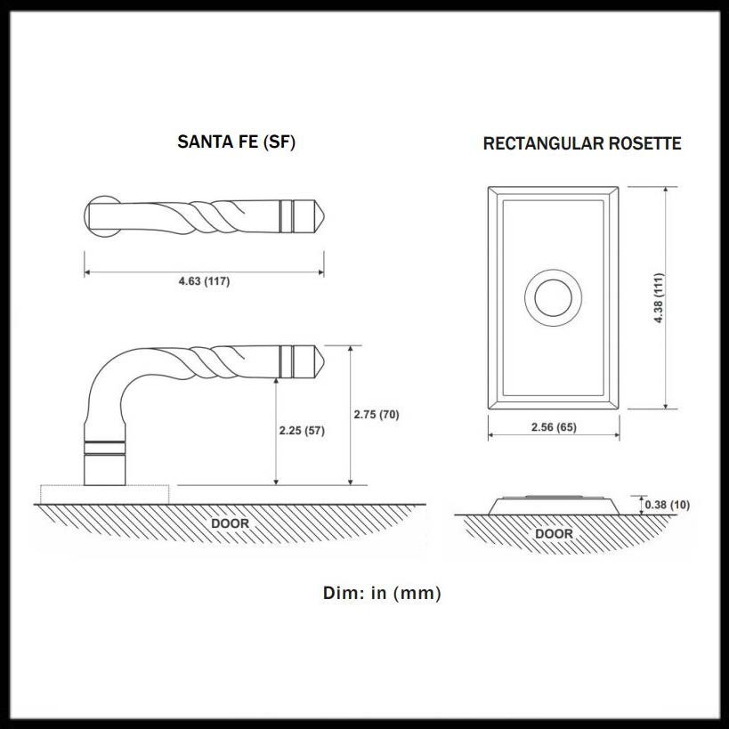 This American Heritage lever is Classic Brass and will give any door a unique style. The Emtek Santa Fe Lever has a Rectangular Rosette and fits any door between 1-3/8” to 2-1/4" thick with a 2-1/8" bore standard door prep. Standard latch is for 2-3/8" backset. Includes Latch and Strike Plate. Available in a variety of different finishes.
