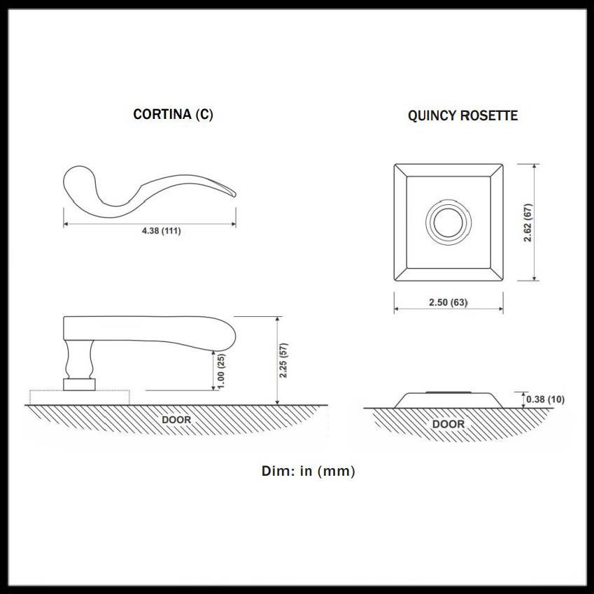 This American Heritage lever is Classic Brass and will give any door a unique style. The Emtek Cortina Lever has a Quincy Rosette and fits any door between 1-3/8” to 2-1/4" thick with a 2-1/8" bore standard door prep. Standard latch is for 2-3/8" backset. Includes Latch and Strike Plate. Available in a variety of different finishes.