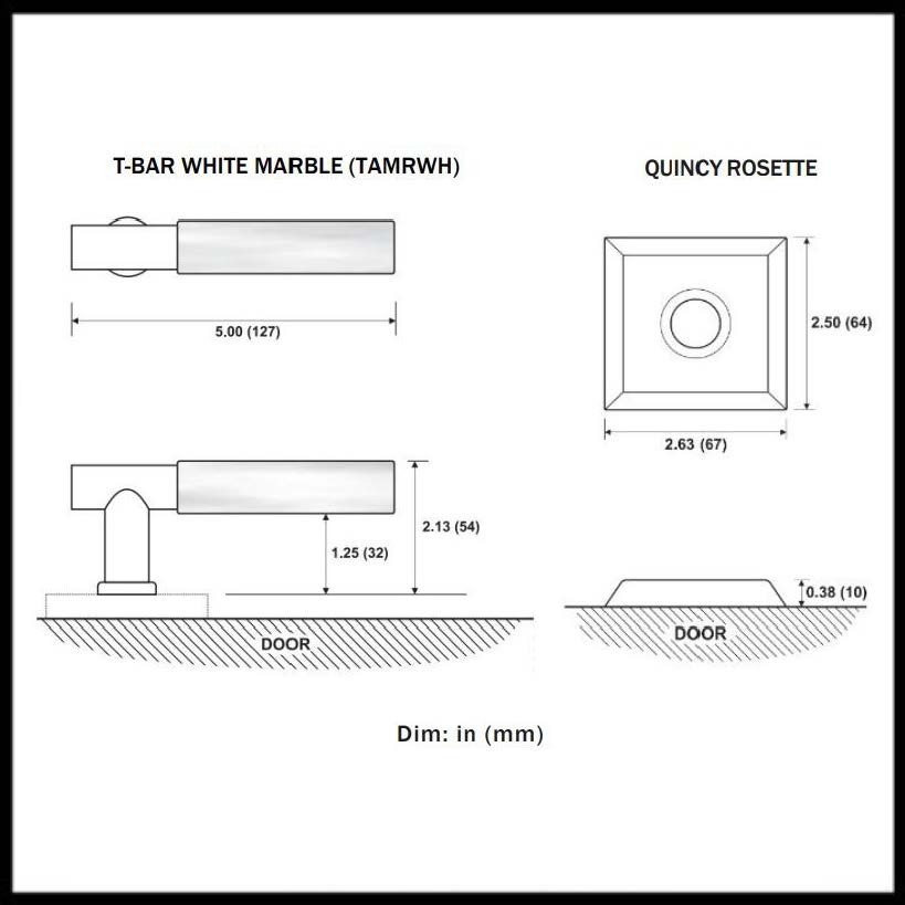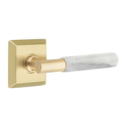 This Contemporary Lever is Modern Brass and will give any door a unique style. The Emtek T-Bar White Marble Lever has a Quincy Rosette and fits any door between 1-3/8” to 2-1/4" thick with a 2-1/8" bore standard door prep. Standard latch is for 2-3/8" backset. Includes Latch and Strike Plate. Available in a variety of different finishes.