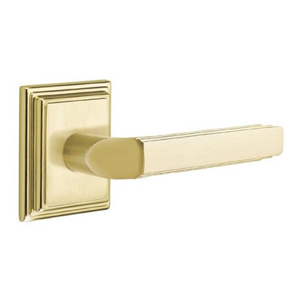 This American Heritage lever is Classic Brass and will give any door a unique style. The Emtek Milano Lever has a Wilshire Rosette and fits any door between 1-3/8” to 2-1/4" thick with a 2-1/8" bore standard door prep. Standard latch is for 2-3/8" backset. Includes Latch and Strike Plate. Available in a variety of different finishes.