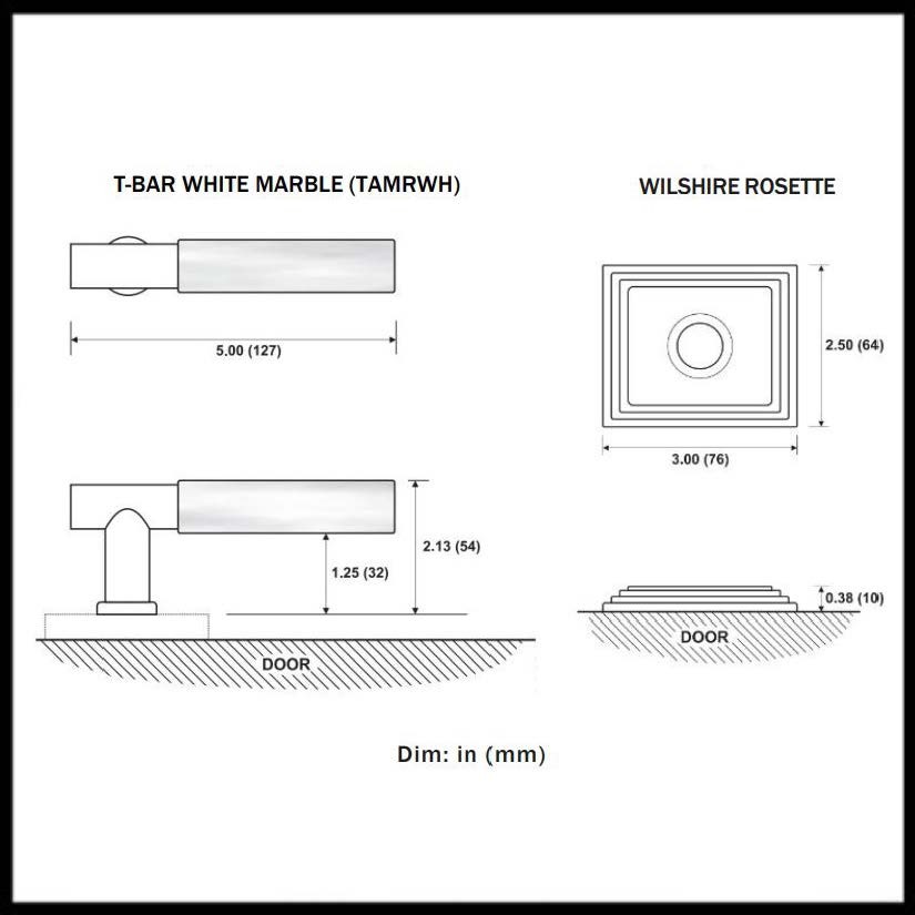 This Contemporary Lever is Modern Brass and will give any door a unique style. The Emtek T-Bar White Marble Lever has a Wilshire Rosette and fits any door between 1-3/8” to 2-1/4" thick with a 2-1/8" bore standard door prep. Standard latch is for 2-3/8" backset. Includes Latch and Strike Plate. Available in a variety of different finishes.