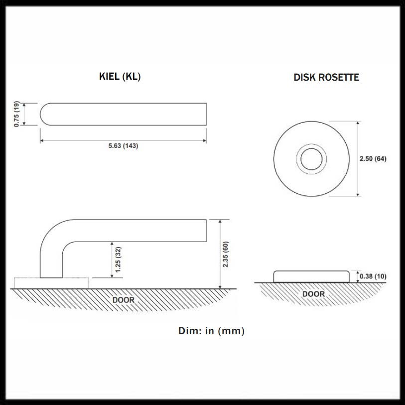 This Stainless Steel lever will give any door a unique style. The Emtek Stainless Steel Kiel Lever has a Disk Rosette and fits any door between 1-3/8” to 2-1/4" thick with a 2-1/8" bore standard door prep. Standard latch is for 2-3/8" backset. Includes Latch and Strike Plate. Available in a variety of different finishes.