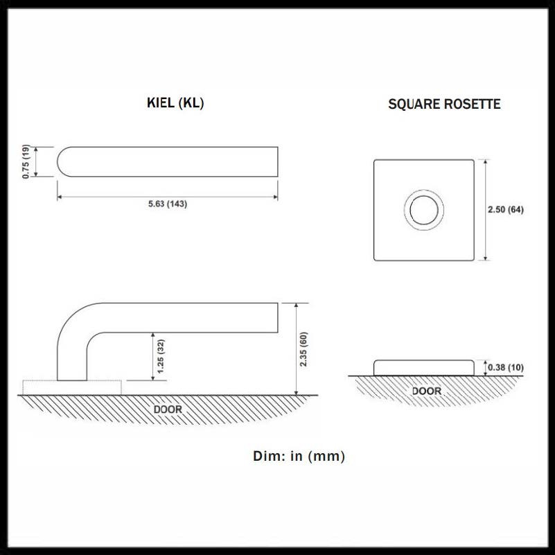 This Stainless Steel lever will give any door a unique style. The Emtek Stainless Steel Kiel Lever has a Square Rosette and fits any door between 1-3/8” to 2-1/4" thick with a 2-1/8" bore standard door prep. Standard latch is for 2-3/8" backset. Includes Latch and Strike Plate. Available in a variety of different finishes.