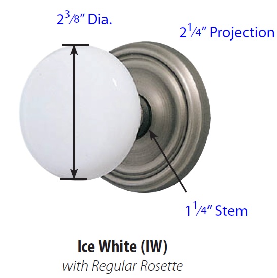 These Porcelain Knobset will give any door a unique style. The Ice White Door Knobs fit any door between 1-3/8” to 2-1/4" thick. Standard latch is for 2-3/8" backset. This lever set is sold as a complete set, it includes Latch and Strike Plate.