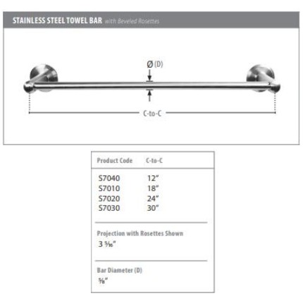Emtek S7040 Stainless Steel Towel Bar with Disk Stainless Steel Rosette, 12"-30" CTC Length