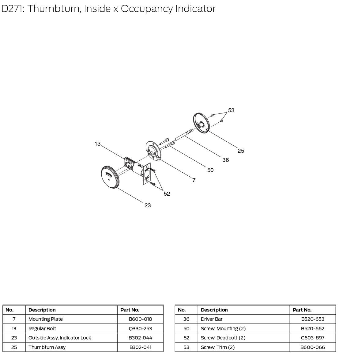 Falcon D271 Thumbturn x Occupancy Indicator, Grade 2 Deadbolt