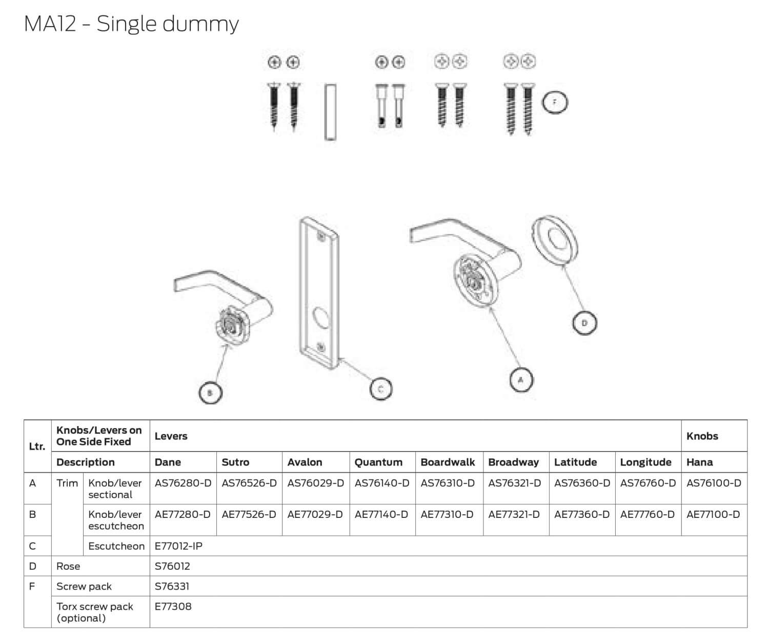 Lever StyleAvalon-Gala (Rose-AG), Boardwalk-Gala (Rose-BOG), Broadway-Gala (Rose-BRG), Sutro-Gala (Rose-SG), Dane-Gala (Rose-DG), Latitude-Gala (Rose-LTG), Longitude-Gala (Rose-LGG), Quantum-Gala (Rose-QG), Avalon-Napa (Escutcheon-AN), Broadway-Napa (Escutcheon-BRN), Sutro-Napa (Escutcheon-SN), Boardwalk-Napa (Escutcheon-BON), Dane-Napa (Escutcheon-DN), Latitude-Napa (Escutcheon-LTN), Longitude-Napa (Escutcheon-LGN), Quantum-Napa (Escutcheon-QN)