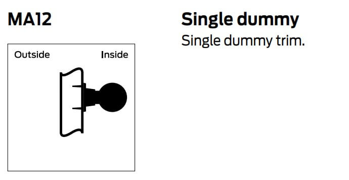 For a wide range of commercial applications where locking or latching is not necessary, Falcon MA12 Single Dummy Trim is the best option. Dummy trim for one side of door. Used for door pull or as matching inactive trim.