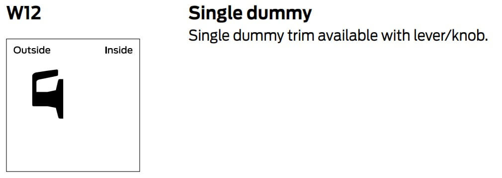 Falcon W12 Single dummy. Single dummy trim available with lever/knob 3-3/8" rose. Variety of finishes,lever and knob styles are available.