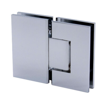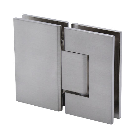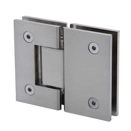 FHC Glendale Square 5 Degree Positive Close Glass To Glass 180 Degree Hinge for Shower Doors is a Junior Glendale Series Hinge has a dual degree pivot pin. It is factory made. For standard door closing applications, set at 90 degrees. For jobs that demand a firmer positive position against a jamb or seal, there is also a secondary setting on the hinge pivot pin that may be field adjusted to allow an additional 5 degrees of closure.