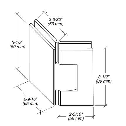 FHC Jr Glendale 135 Degree Glass-To-Glass Hinge for Shower Doors is bathroom glass shower door hinges accessories designed for 3/8" to 1/2" Tempered Glass. The Junior Glendale Series Hinge has a dual degree pivot pin. It is factory made. For standard door closing applications, set at 90 degrees. For jobs that demand a firmer positive position against a jamb or seal, there is also a secondary setting on the hinge pivot pin that may be field adjusted to allow an additional 5 degrees of closure.