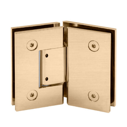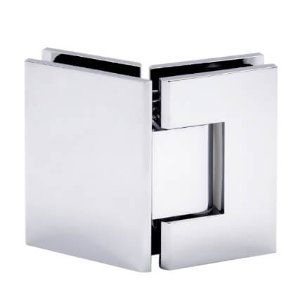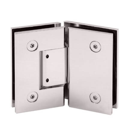 FHC Jr Glendale 135 Degree Glass-To-Glass Hinge for Shower Doors is bathroom glass shower door hinges accessories designed for 3/8" to 1/2" Tempered Glass. They are very helpful for constructing a frameless shower or bathtub closet in a home or business bathroom. Available in different finishes.