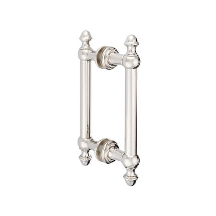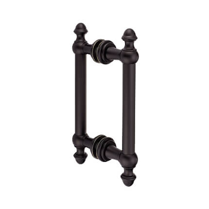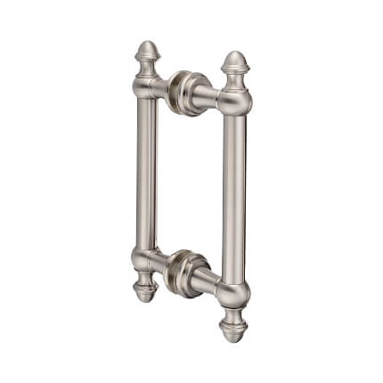 FHC Noble Series 8" Back-To-Back Shower Door Handles is offered as a back-to-back mounted push/pull set glass door handles designed for use with 1/4"-1/2" Tempered glass. The Shower Pull Handle aesthetics enhance the interior design of a building or home, but a door's functionality can significantly affect how often it is used.