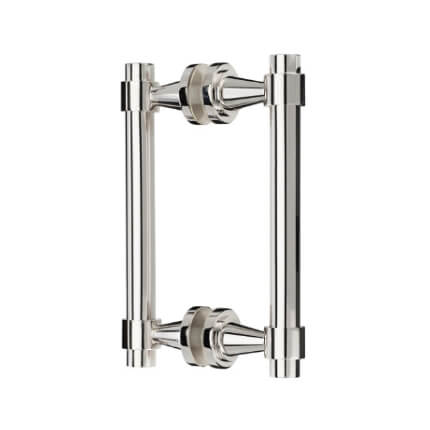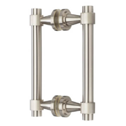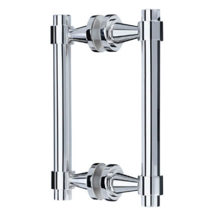 FHC Opulent Series 8" Back-To-Back Shower Door Handles is offered as a back-to-back mounted push/pull set glass door handles designed for use with 1/4"-1/2" Tempered glass. The Shower Pull Handle aesthetics enhance the interior design of a building or home, but a door's functionality can significantly affect how often it is used.