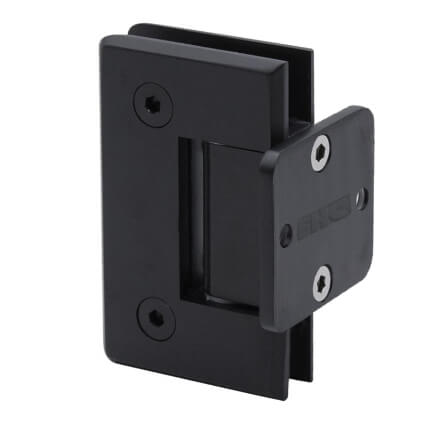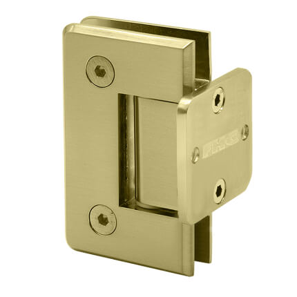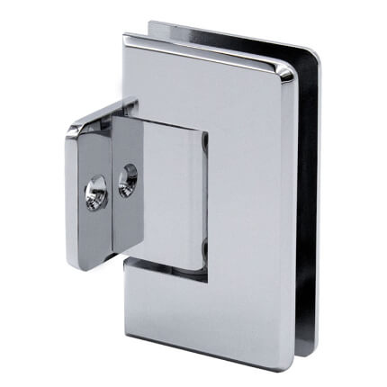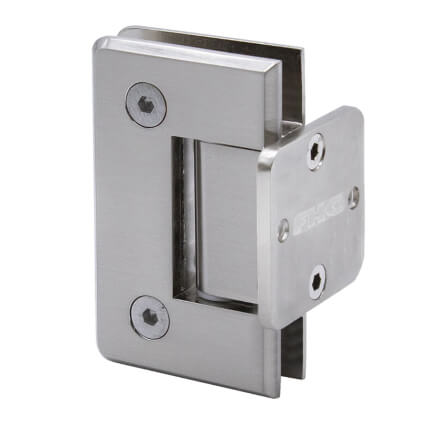 FHC Preston 180 Degree Pony Wall Mount Hinge for Shower Doors glass shower door hinges accessories designed for 3/8" to 1/2" Tempered Glass Only. The Preston Series Hinge has a dual degree pivot pin. It comes factory set at 90 degrees for normal door closing applications. A secondary setting on the hinge pivot pin that may be field adjusted to allow an additional 5 degrees of closure.