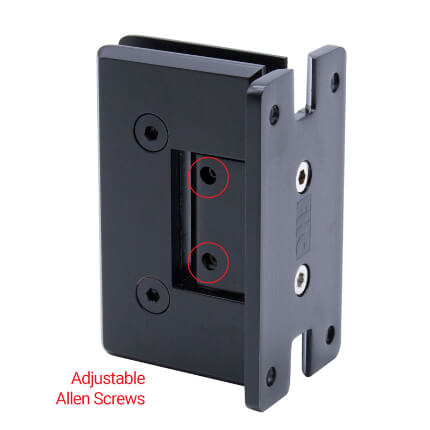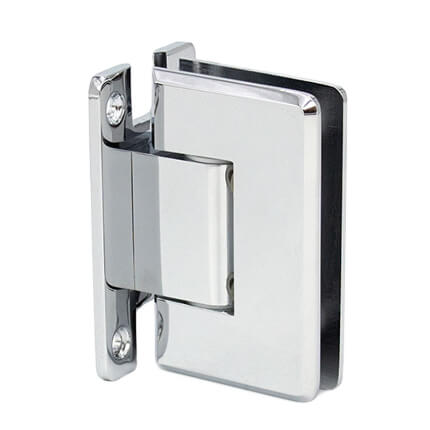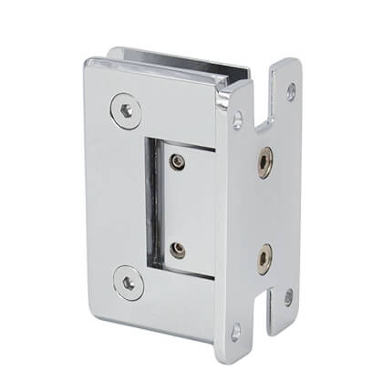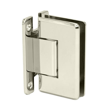FHC Preston Adjustable Beveled Wall Mount Hinge for Shower Doors Short Back Plate is bathroom glass shower door hinges accessories designed for 3/8" to 1/2" Tempered Glass. The Preston Series Hinge has a dual degree pivot pin. It comes factory set at 90 degrees for normal door closing applications. A secondary setting on the hinge pivot pin that may be field adjusted to allow an additional 5 degrees of closure.