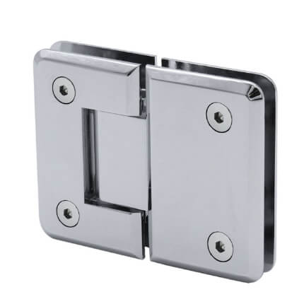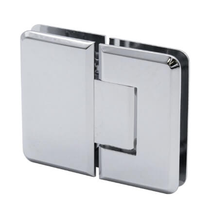 FHC Preston Beveled 5 Degree Positive Close Glass To Glass Hinge for Shower Doors is bathroom glass shower door hinges accessories designed for 3/8" - 1/2" Tempered Glass. The Preston Series Hinge has a dual degree pivot pin. It is pre-set at 90 degrees for standard door closing applications at the factory. For jobs that demand a firmer positive position against a jamb or seal, there is also a secondary setting on the hinge pivot pin that may be field adjusted to allow an additional 5 degrees of closure.