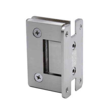 FHC Preston Beveled 5 Degree Positive Close Wall Mount Hinge for Shower Doors Offset Back Plate is bathroom glass shower door hinges accessories designed for 3/8"-1/2" Tempered Glass. The Preston Series Hinge has a dual degree pivot pin. It comes factory set at 90 degrees for normal door closing applications. A secondary setting on the hinge pivot pin that may be field adjusted to allow an additional 5 degrees of closure.