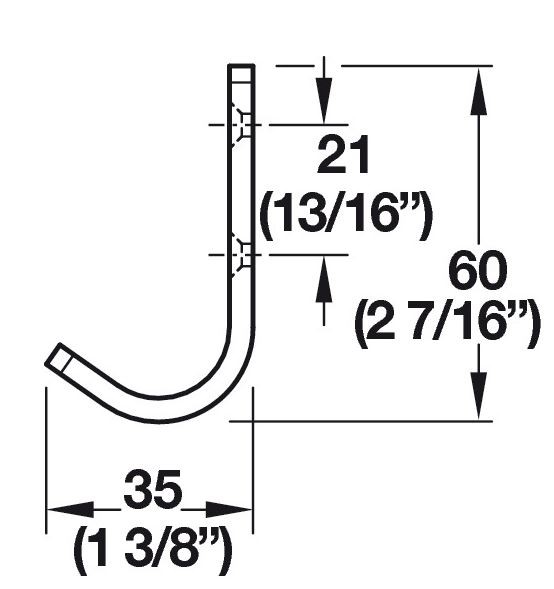 Hafele Aluminum Coat Hook, 11/16" x 1-3/8" x 2-7/16"