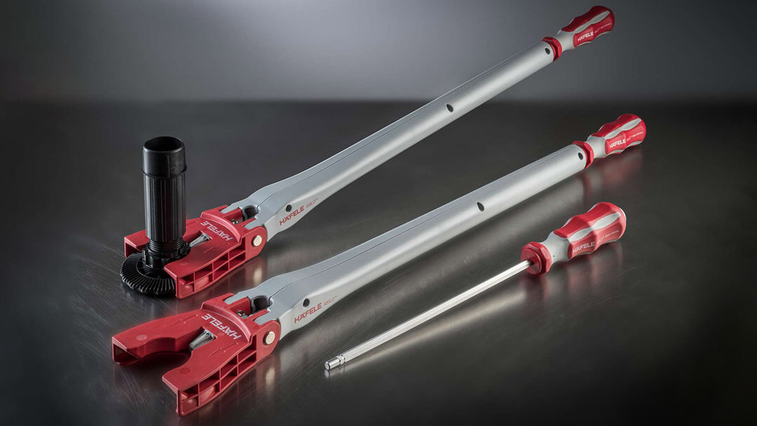 Installers everywhere understand just how difficult it can be to true up cabinets while simultaneously staring down a level and stretching on hands and knees to reach the rear feet. But it doesn’t have to be that complicated. Thanks to the innovators at Häfele, there’s a much easier way to level cabinetry and furniture – and it doesn’t involve reaching, straining or any other exhausting gymnastics moves. The revolutionary Häfele Exclusive Axilo® Plinth Adjusting Fitting System is a game-changing solution that combines an adjustment tool with adjustable plinths, allowing complete plinth leveling in just a few simple steps.