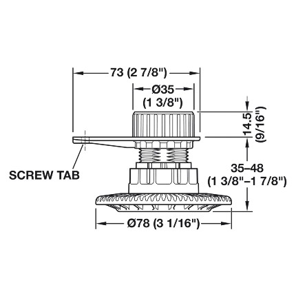 Press-Fit Low Profile Foot, with mounting plate, for Häfele AXILO™ 78 plinth system, can be installed on low plinth with a height of 35–48 mm.