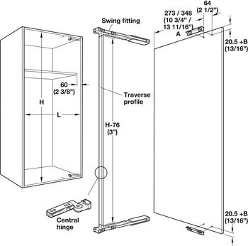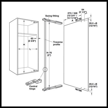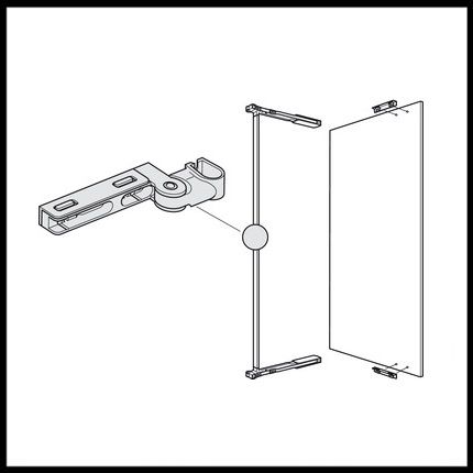 Hafele Central Hinge is a required component for Hafele Lateral Swing Fitting Set.