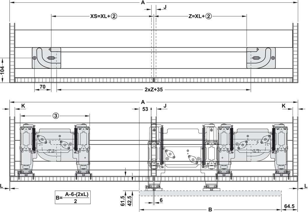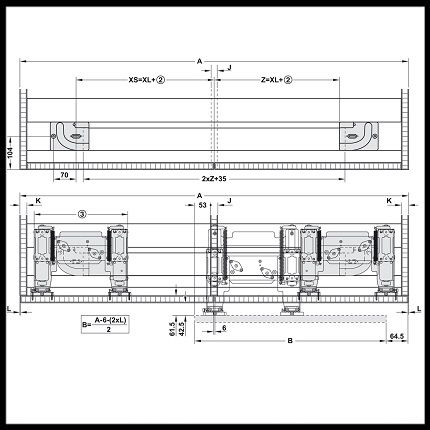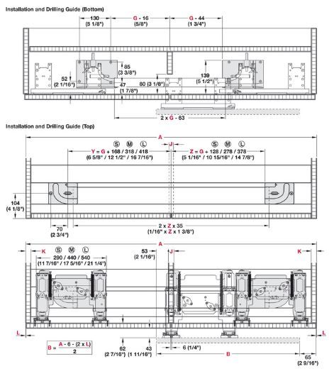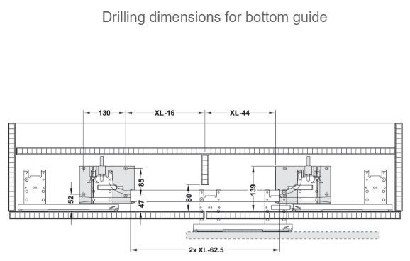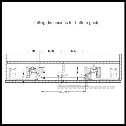 Hafele Frontino 40 Hardware System is designed for two by-pass cabinet doors with handles. Click here to view the Hafele Frontino 40 Catalog.