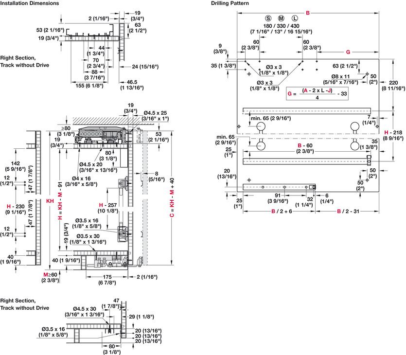 - Hafele #406.02.61: Additional Tracks with Screw Holes