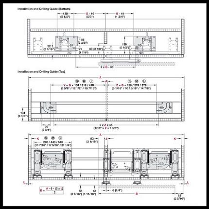Hafele Frontino 40 Hardware System is designed for two by-pass cabinet doors with handles. Coplanar doors slide smoothly with a soft closing mechanism, and sit flush when in a closed position. Available in options of cabinet and door widths. Can accommodate doors up to 88 LB, with a height up to 92- 15/16”.