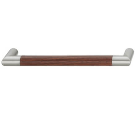 The Fusion Collection Cabinet Pull is 8.2" long. The grip of this Hafele handle is made of beech and is coated with a black lacquer. The surface provides a leather/rubber feel.