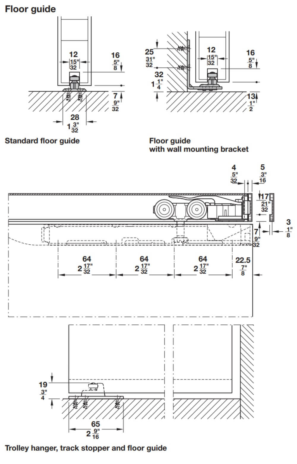 - For 1 sliding door with upper track, 2 m (6' 6 3/4")
