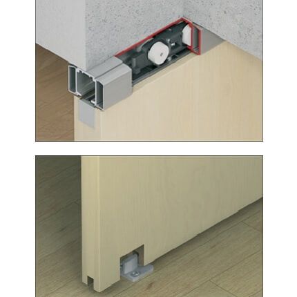 Hafele Slido Classic 40I - 120I Sliding Door Series is designed for mortising into wood doors up to 265 lbs. Includes sliding hardware only, compatible with Slido Classic Upper Track (sold separately). Can be installed in ceiling or wall mounted applications.