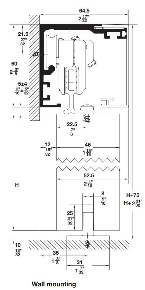 This is a required product for Hafele 120E Fitting Set for Slido D-Line12, for 1 or 2 Sliding Doors
