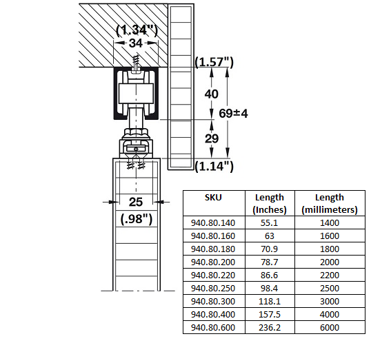 Single ceiling mount track is predrilled for easy installation. It is a required component for Hawa Junior 80, Junior 40 and Junior 100 Series, see below for compatible parts. Track is clear anodized aluminum and is available in a selection of lengths.