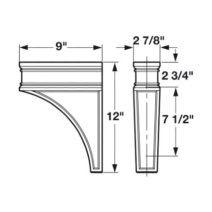 Hafele Wooden Corbel, Arcadian Collection, 12" x 2-7/8" x 9"