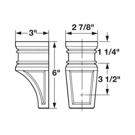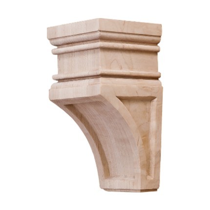 This Hafele Aracadian Collection Corbel is available hand carved and is available in a selection of wood species. Sized 6" x 2-7/8" x 3".