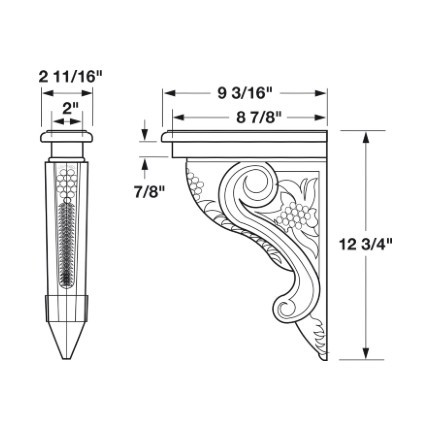 This Hafele Bordeaux Collection Corbel is hand carved and is available in a selection of wood species. 12-3/4" x 2-11/16" x 9-3/16"