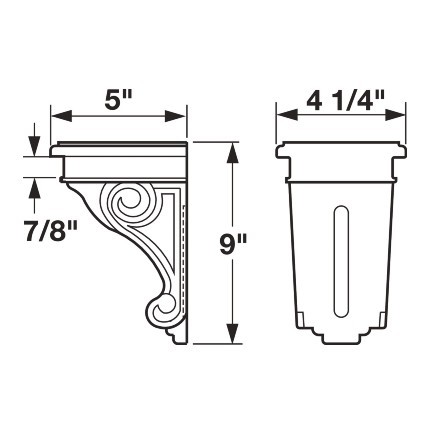 Hafele Wooden Corbel, Scroll Collection, 9" x 4-1/4" x 5"