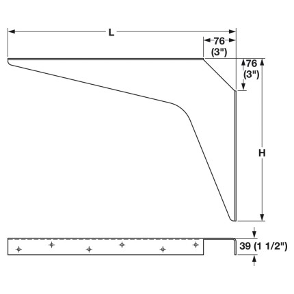This Work Surface Brackets, Rigid, 15" x 21" (381mm x 533mm) work station bracket from Hafele is designed for heavy duty jobs. This bracket is made from steel. This bracket features an 1/8" (3.175mm) thickness and over a 453.59 kg. (1000 lbs.) load capacity per pair. Larger sizes also feature cut outs for wire management. Pack includes 3 pairs.